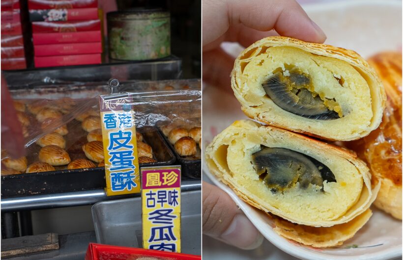 彰化鹿港老街美食|凰珍囍餅|平價美味糕餅專賣店|推薦皮蛋酥,內餡是香甜奶酥加皮蛋~很美味唷