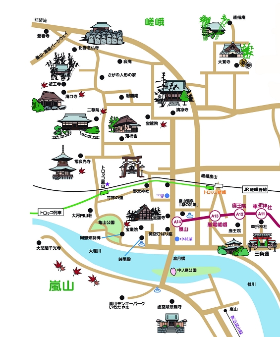 (此圖出處為小氣少年Blog中的這篇:[行程懶人包-京都.嵐山] 經典嵐山路線)