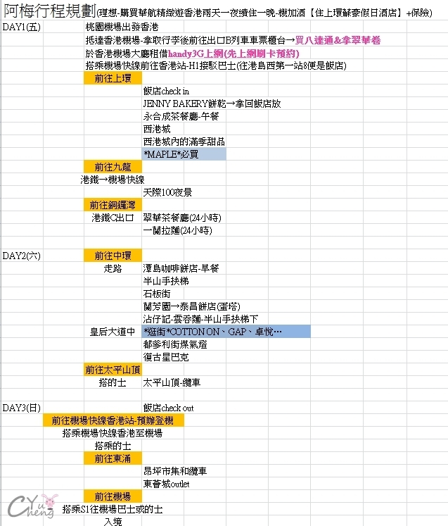 請先抱佛腳認識香港,從旅遊部落客們中看了超過上百篇介紹文及學姊借我的香港書籍,但在你決定分區完後書籍的幫助也減少很多,畢竟書籍中是完整介紹香港旅遊景點,可用之處又更少了,所以推薦可以觀望網路部落客們,了解當地風情文化,且有些景點、餐廳也是有固定休假日和營業時間,因為每個人對旅行意義不同,網路上香港文通常介紹仔細度皆不同、有人回憶旅程、有人教你怎麼玩、告訴你怎麼吃、怎麼省,所以對症下藥XD,對自己的喜好選擇,一定是最獨一無二的旅程。