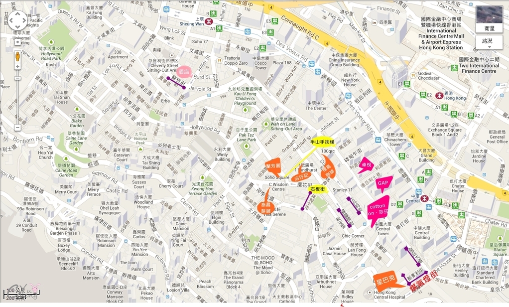 從知道住在上環後就開始著手看景點的地圖怎麼走,拉開地圖最清楚,為了預防忘記距離