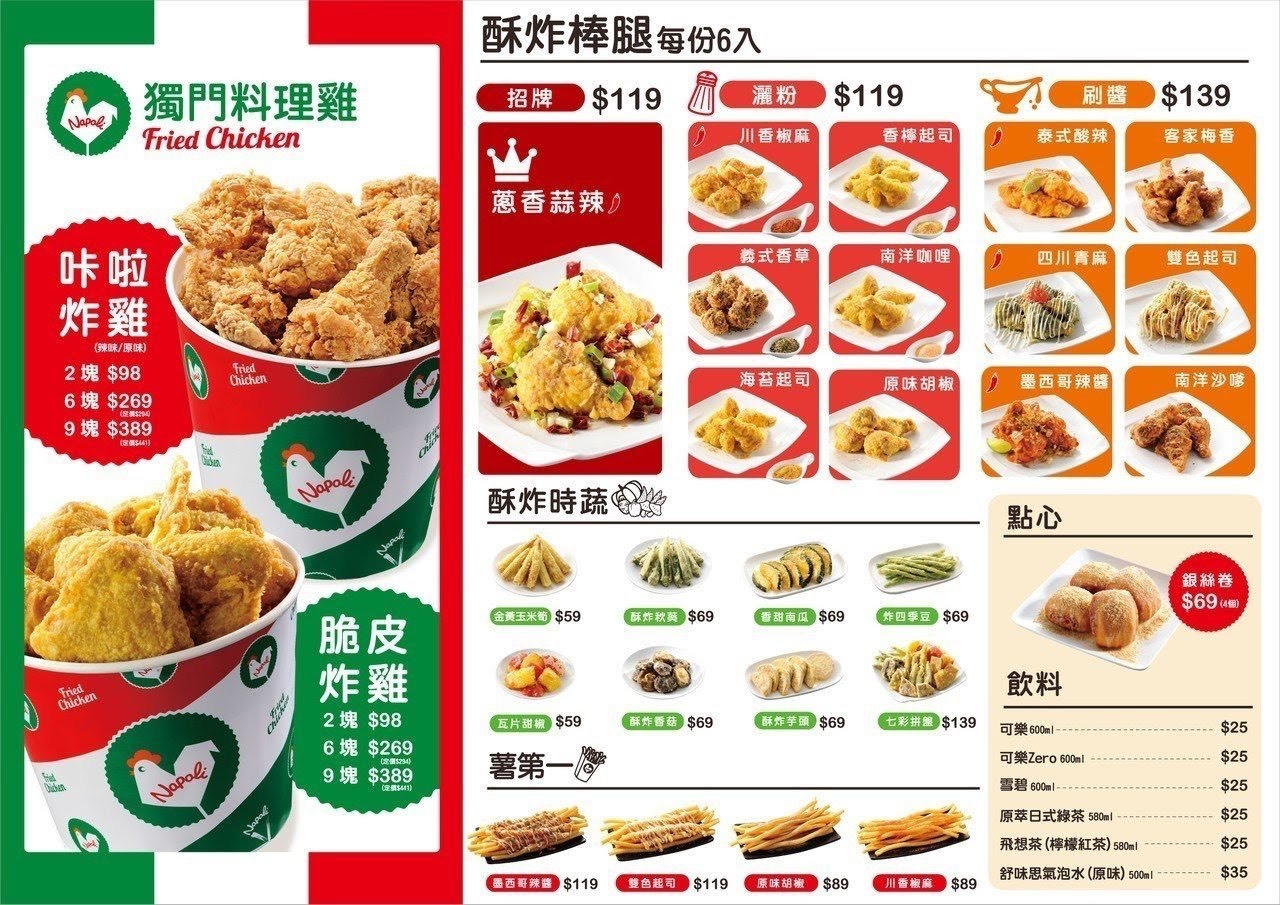 位在晴光市場附近、且捷運民權西路站、中山國小站,都可以步行抵達的拿坡里炸雞專賣店