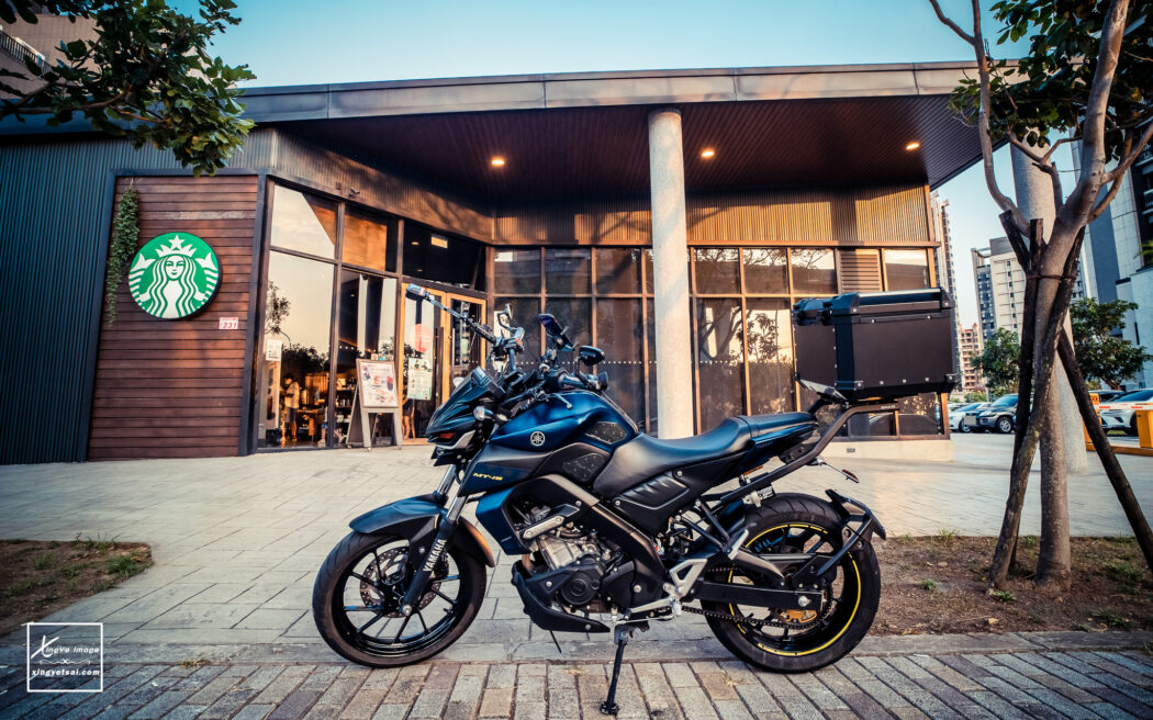▲分享一下前言提到的星野已經在這間門市,擺拍他的兩台擋車(GSX R150、MT15)了,不論是早上或是晚上,都是個拍美美的好去處唷!