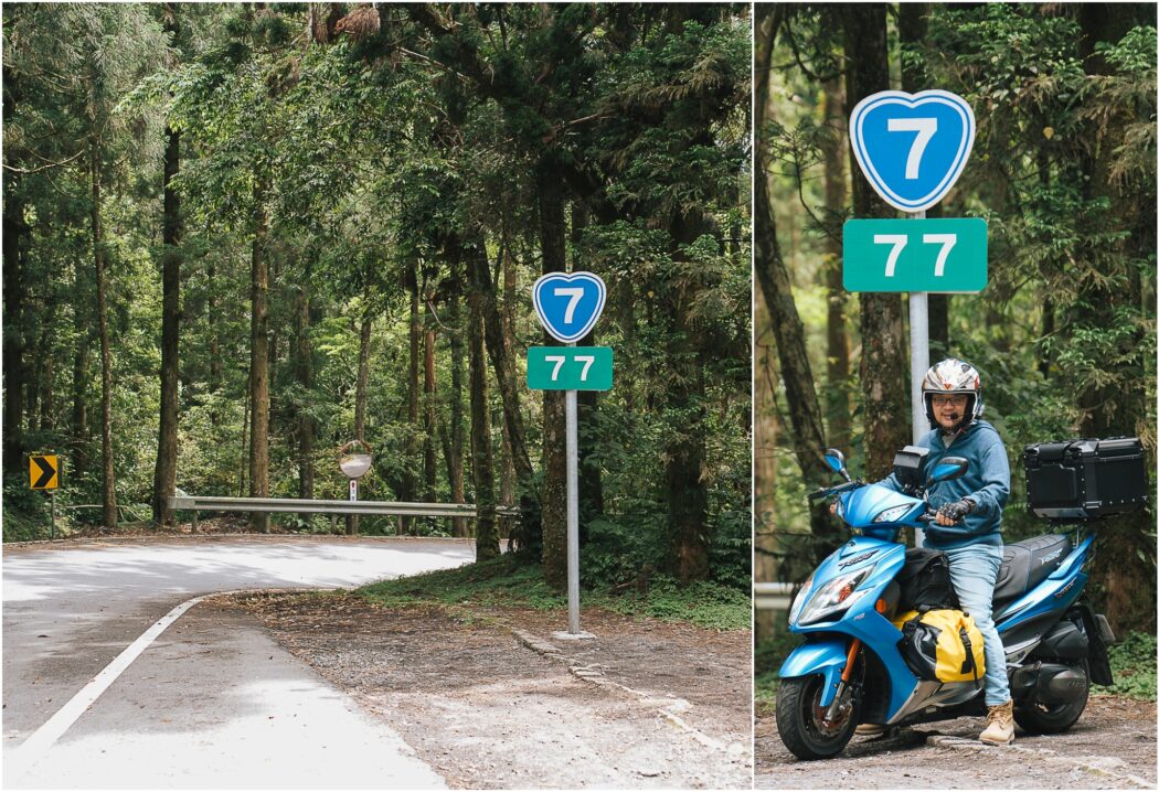 位於北橫公路台7線77K的知名地標,是許多車友來到此處必拍照留影之處,原本的地標位置若要停留拍照,車輛臨停會很危險,聽星野說後來在台7線77K的地標旁約100公尺處,增設了一處心型台7線77K的拍照小天地,這次我們就來踩踩點囉!因空地處大了許多,可以臨停汽車、多輛機車都不是問題,若是像我們要架腳架拍照,也是蠻安全的!