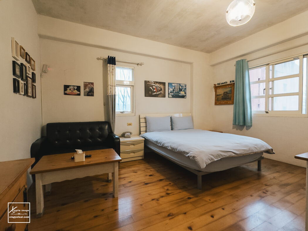 ▲以一般的雙人房型來說,空間偏大,有額外提供沙發區與書桌區,但房內卻不會有擁擠感,或許是窗邊的景色,真的會讓人格外的遼闊,全室的木地板的房型,感覺更有質感,房內除了掛畫之外,還有牆上畫作,我只能說民宿主人是真的很有品味~