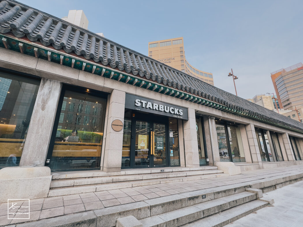 在韓國有多間特色韓屋星巴克門市,其中位在德壽宮附近的星巴克臻選門市「丘壇店 스타벅스 환구단점」,是許多旅人到訪首爾必訪的經典門市,享受在韓屋傳統的設計外觀,但門市裡卻是現代且舒適的氛圍,不過這次我們的朝聖,沒有特別飲用星巴克的飲品,只買了一個韓國限定的城市杯,系列杯品真的是美到眼睛都發亮了!