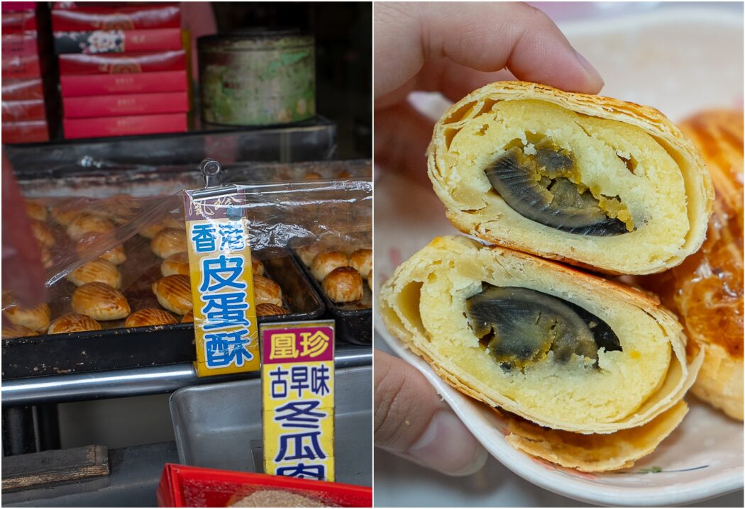 ▲凰珍囍餅是藝人米可白家裡經營的,雖有名人的加持,不過他們家的餅真的都挺好吃的,我們當天買了些皮蛋酥、蛋黃酥跟3塊小餅,不過這篇圖文主要只紀錄超特別的皮蛋酥