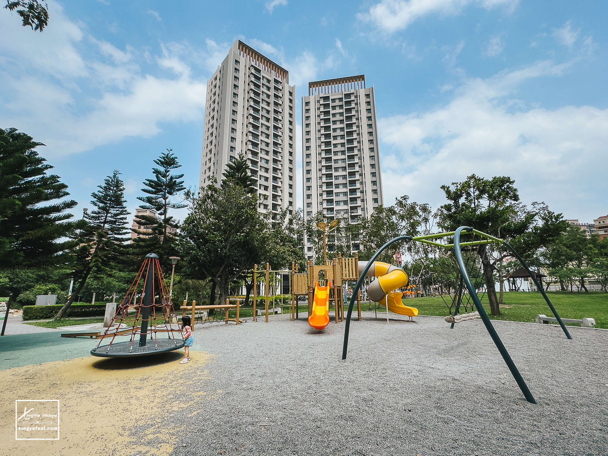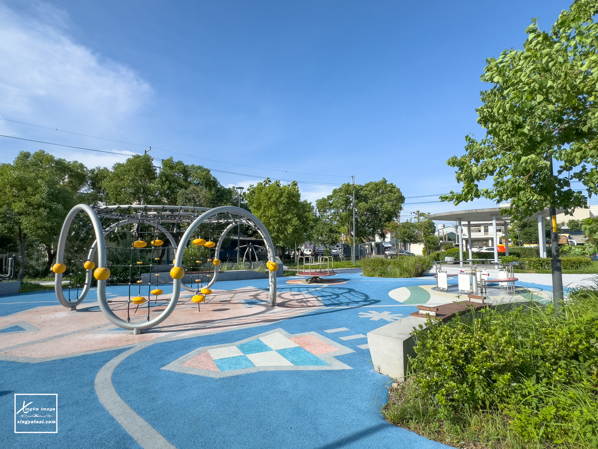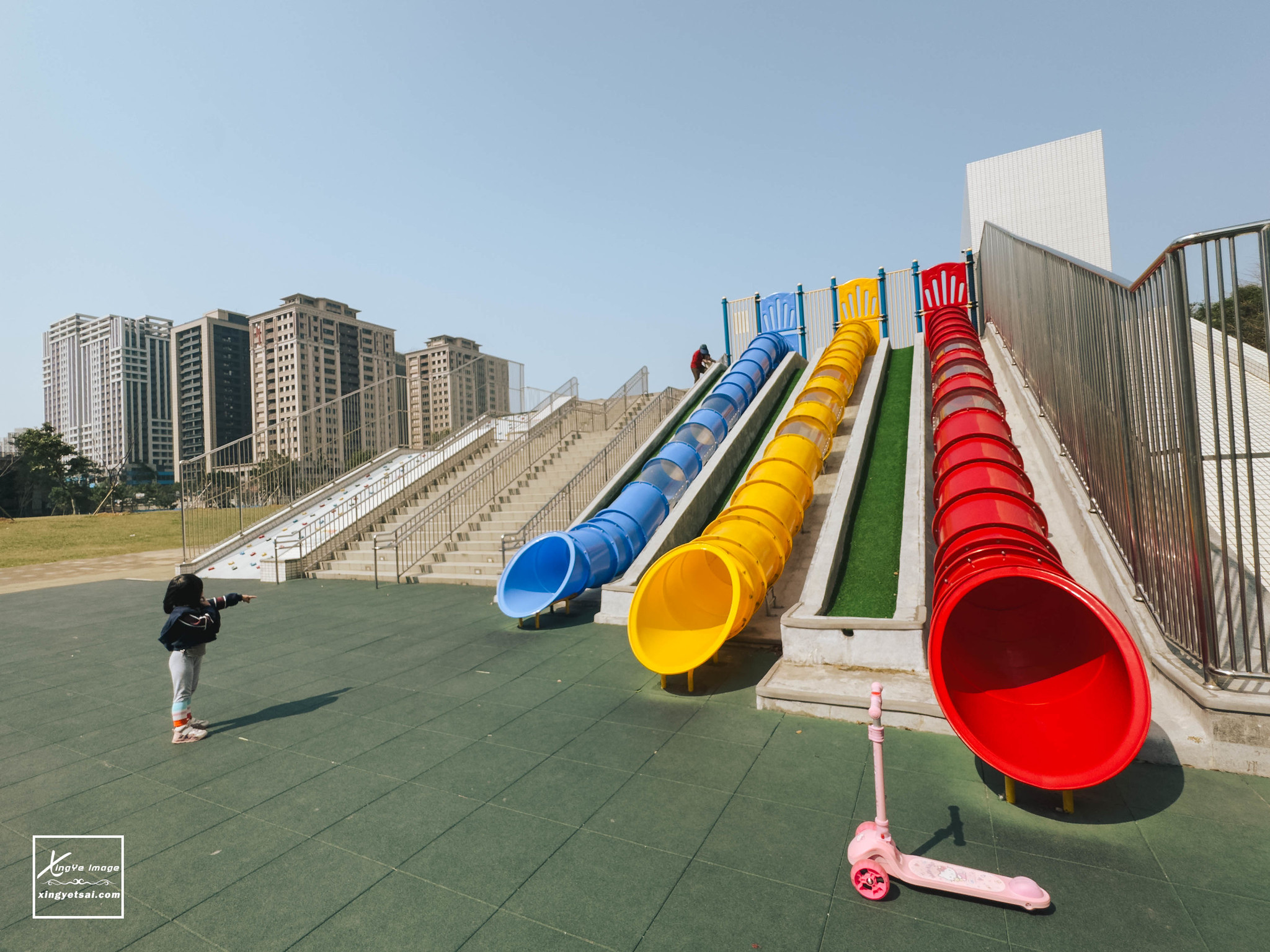▲2024年全新改造!超好玩的兒童遊戲場,設有多元溜滑梯、礫石沙坑、鞦韆、彈跳床、蹺蹺板,是阿珊小時候最愛的公園!2025/10發現公園的蹺蹺板有更新,改為「X型四人座翹翹板」,感覺很酷很好玩!