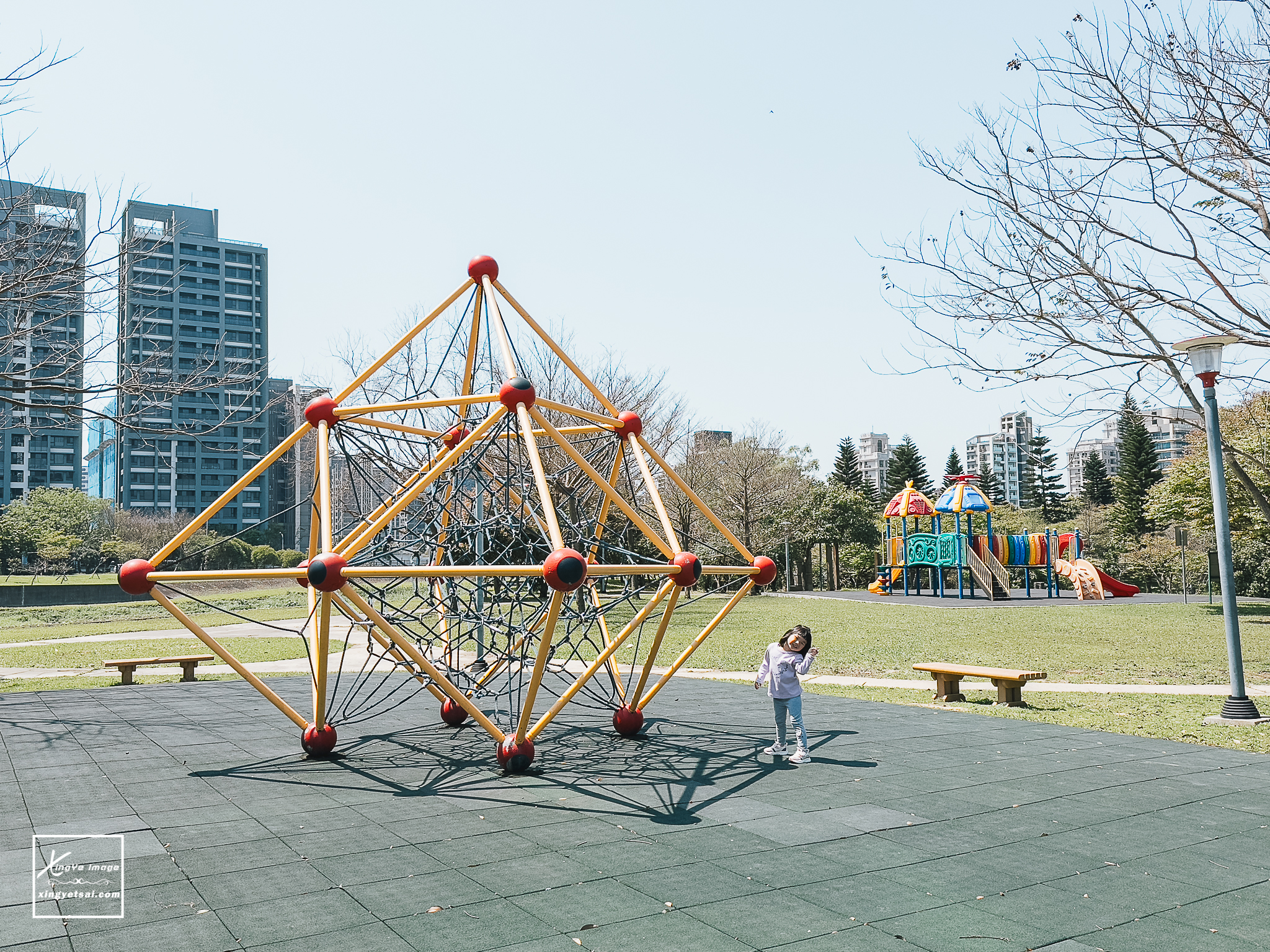 ▲城市綠意系公園,兒童遊戲場設施應有盡有,適合全家運動散步、野餐的親子公園,書法公園周圍有許多早午餐、火鍋、蛋糕店等,因公園也位在華泰名品城(靠近3期入口)、新光影城旁,是經典的公園半日遊之旅首選!