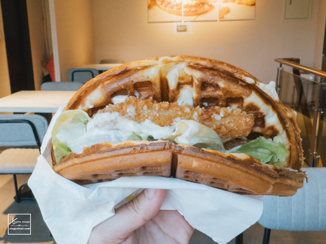 ▲有生菜、炸魚的鹹食鬆餅真的是烏梅的愛,有時候怕吃全甜的鬆餅會太膩,就喜歡吃鹹口味的