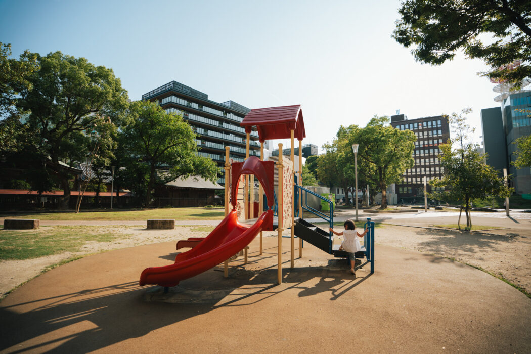 帶著滿3歲的阿珊第一次挑戰日本福岡自由行,我們在繁華的天神商圈發現了這座「警固公園」,它緊鄰警固神社與各大百貨,地理位置絕佳,雖然是都會型的小型兒童遊戲場,卻是孩子放電、大人輪流逛街的完美地點,而且公園真的是小孩的共同語言,看著阿珊與日本孩子跨越語言的純粹互動,真的是超級可愛的!